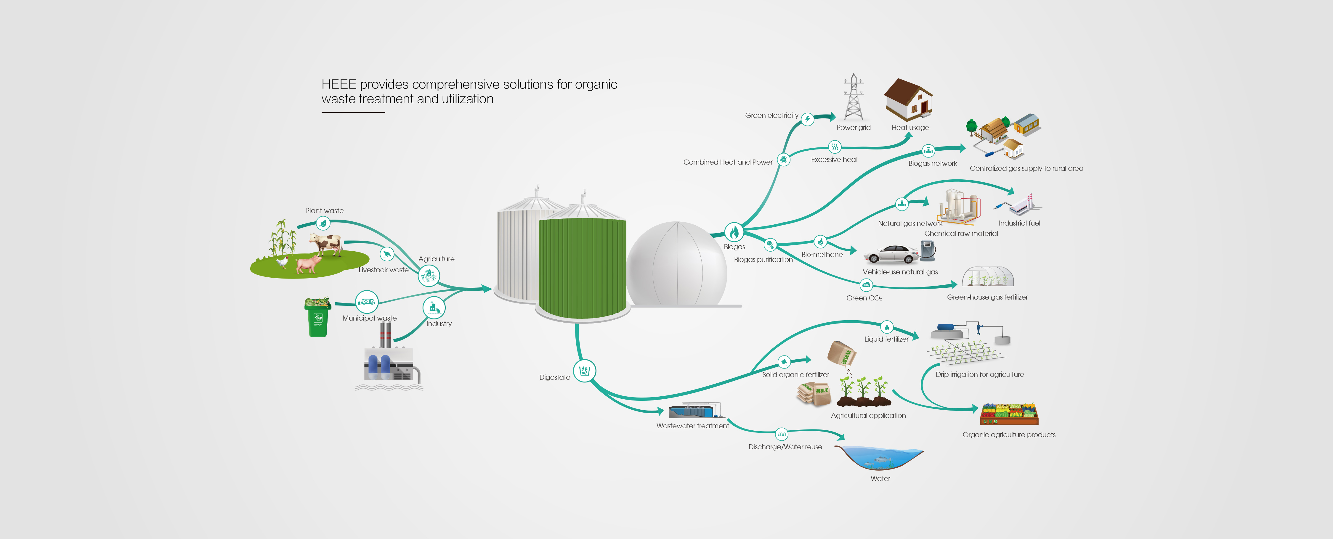 Founded in 1992, HEEE is the domestic industry leader in biogas and bio-methane. HEEE is a High-Tech certificated enterprise specified in designing, constructing and general contracting (Turnkey) of large scale biogas and bio-methane projects, as well as developing and manufacturing equipment for biogas plants. HEEE has designed and constructed more than 200 large and medium-sized biogas plants home and abroad, with the raw materials of organic waste mainly from agricultural, municipal and industrial fields.
