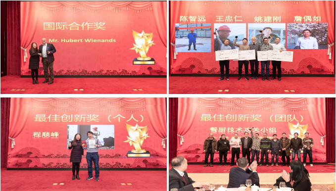 緊接著進(jìn)行的是頒獎環(huán)節(jié),對2018年度表現(xiàn)突出的個人和團(tuán)體進(jìn)行表彰,獎項包括優(yōu)秀新員工獎、優(yōu)秀員工獎、優(yōu)秀團(tuán)隊獎、國際合作獎、服務(wù)十年以上忠誠員工獎、最佳創(chuàng)新獎個人和團(tuán)隊,感謝他們對公司發(fā)展做出的貢獻(xiàn)!